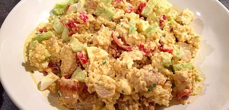 Wenn es schnell gehen muss, ist Couscous ein tolles und leckeres Gericht. Kaum aufgekocht, ist er schon genussbereit. Ich habe ihn noch mit einer Curry-Magerquark-Sauce verfeinert.