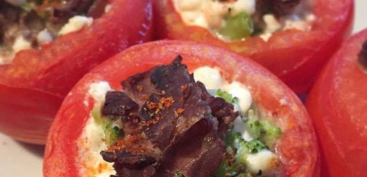 Zuerst die Tomaten aushöhlen. Danach Hüttenkäse, Brokkoli und Roastbeef miteinander vermischen. Gewürze nach Belieben dazugeben. Die gefüllten Tomaten für 20 Minuten bei 160 Grad in den Ofen legen.