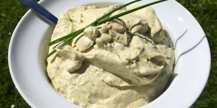 Alles in einer Schüssel zusammenführen, rühren und mit Schnittlauch, Pfeffer und weiteren Gewürzen abschmecken.