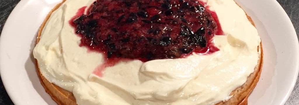 - Mit Magerquark ergänzen und dann die Heidelbeeren hinzufügen (ich habe sie in den Mixer gemacht, daher sehen sie so aus)