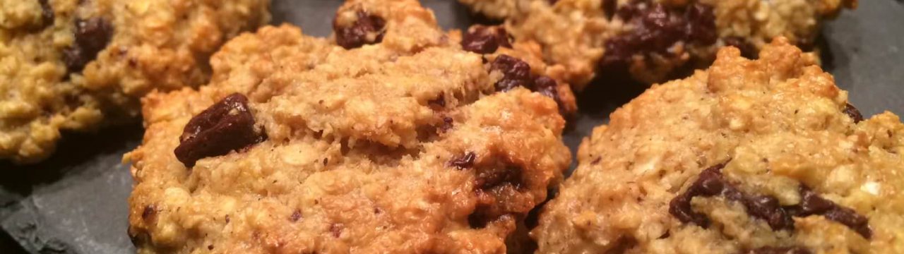 Backofen auf 180C vorwärmen. In einem Schüssel alle Zutaten ausser Chocolate Chips gründlich zusammenmischen und verarbeiten. Anschliessend die Chocolate Chips zufügen und untermischen. Mit Hilfe eines Löffels (oder Mini-Eisslöffels) aus dem Teig kleine Bälle formen. Natürlich kann man es auch mit der Hand machen. Die Bälle 2-3 cm voneinander auf ein Backpapier auf das Backblech platzieren. Solange backen, bis sie etwas auseinander gehen und Goldbraun werden, ca. 10-12 Minuten lang.